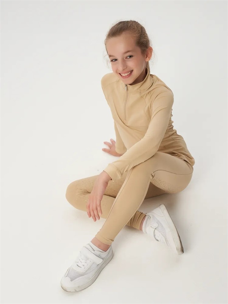 Лонгслив детский для конного спорта и верховой езды, бежевый