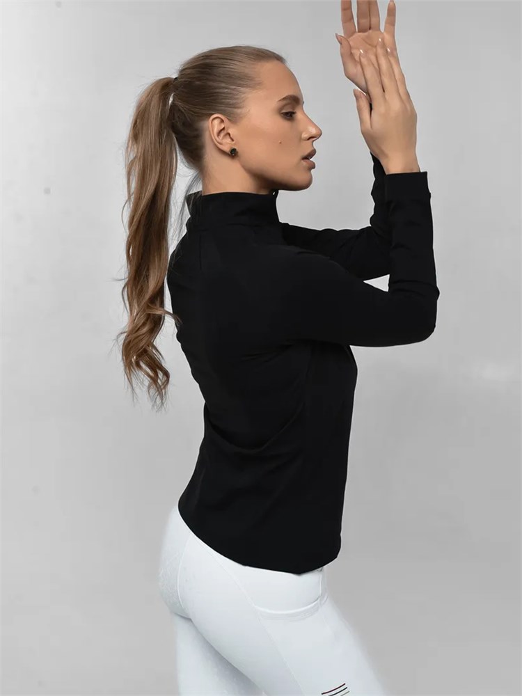 Представляем вам утепленный лонгслив женский для верховой езды и конного спорта утепленный – ваш верный спутник в холодные зимние дни, созданный специально для любительниц конного спорта. Этот лонгслив с начесом станет незаменимой частью вашего гардероба, обеспечивая комфорт и тепло даже в самые морозные дни. Изготовленный из премиум-материала с добавлением эластана, он прекрасно облегает фигуру, не сковывая движений, и дарит ощущение невероятной мягкости. Лонгслив MONIVITO – это идеальное сочетание стиля и функциональности. Его гладкая фактура и стильный логотип бренда подчеркнут ваш индивидуальный стиль, а утепленный флис согреет вас во время тренировок на свежем воздухе. Длинные рукава и воротник-стойка надежно защитят от ветра и холода, а эластичный материал позволит вам свободно двигаться в седле. Этот лонгслив станет вашим верным другом на всех тренировках по верховой езде и конному спорту.