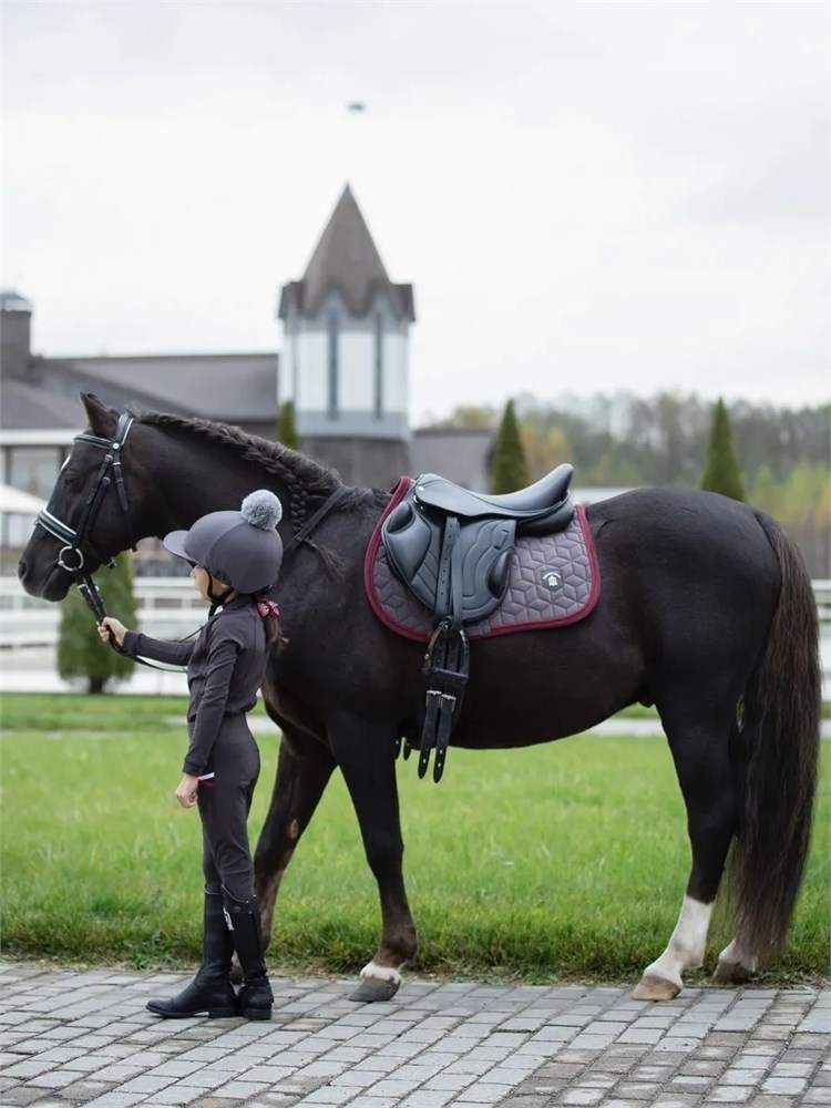 Вальтрап для лошадей и пони, серый с бордовой каймой